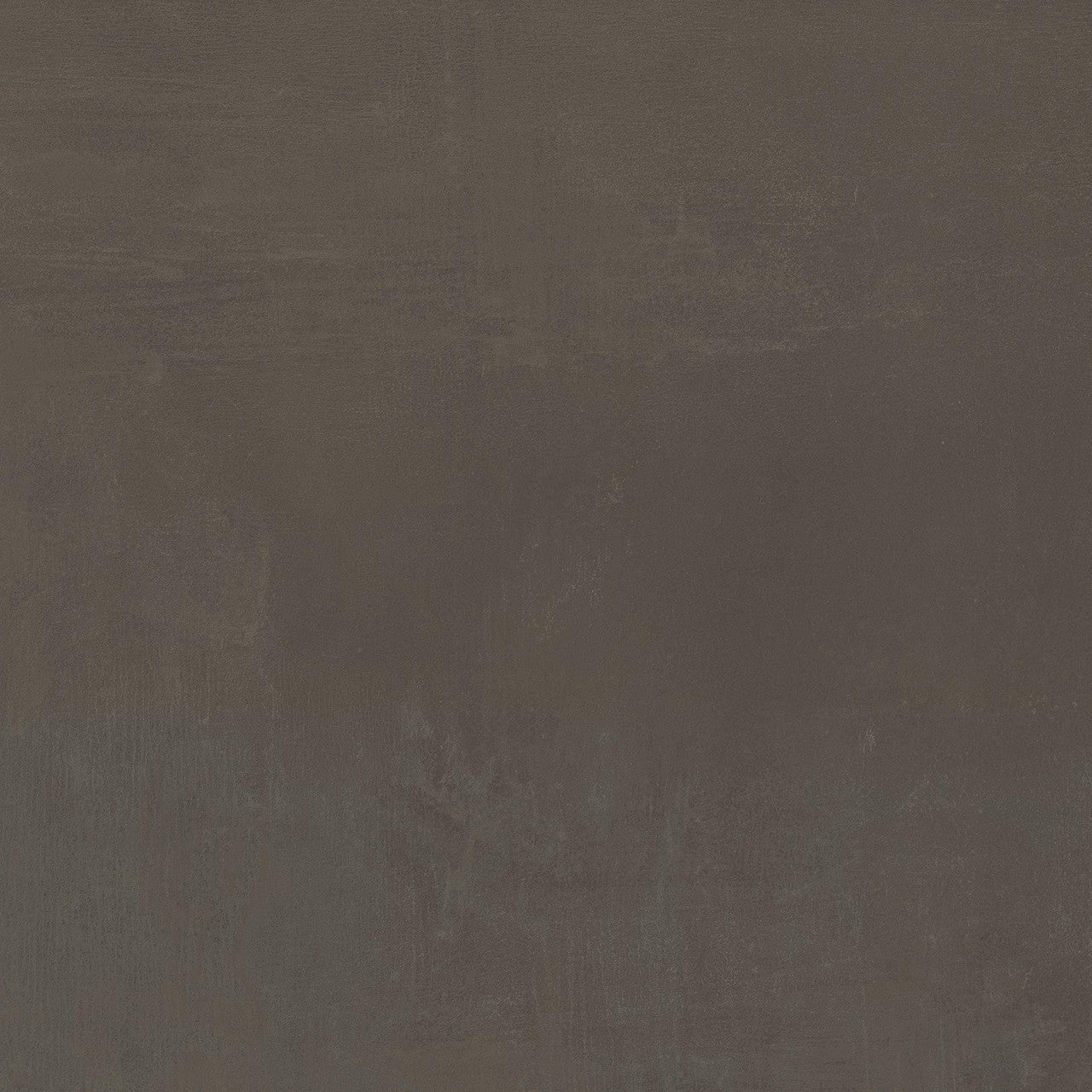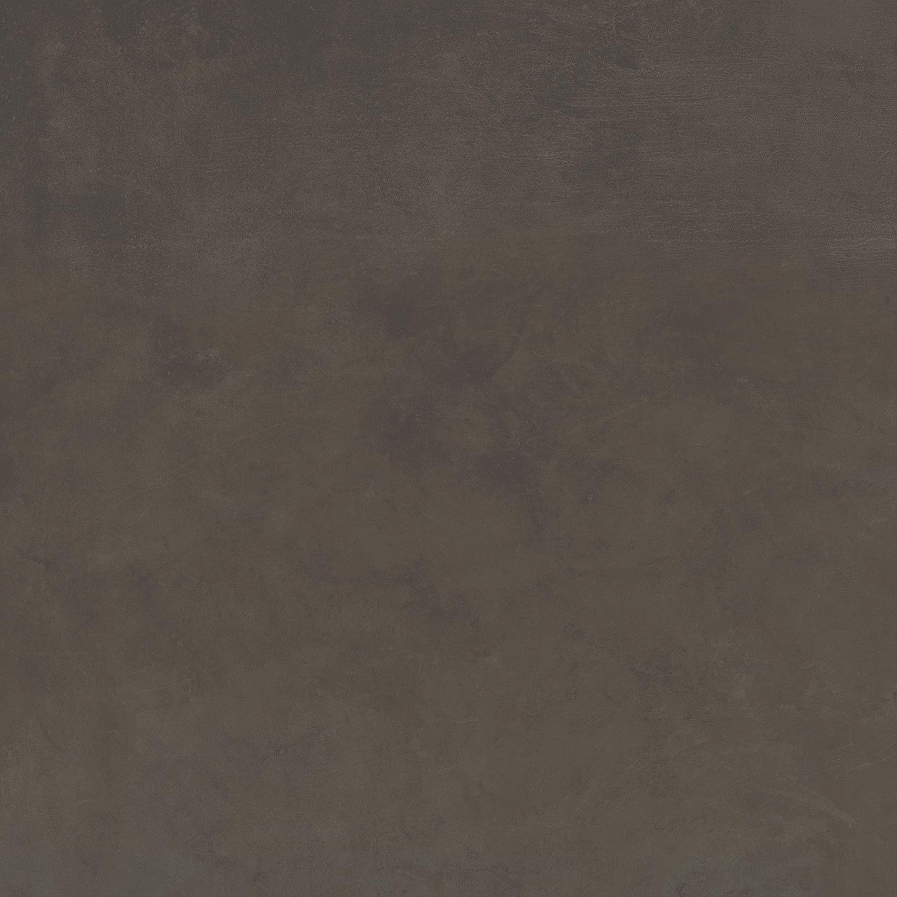 La teinte de fond est un brun terreux profond, chaud et ancré, que viennent traverser des nuances de gris ardoise en légères variations de surface. Ce mariage de tons — la chaleur du brun, la retenue du gris — évoque directement la texture du béton patiné, sans en reproduire l'uniformité froide. La variation chromatique V2 garantit une légère irrégularité naturelle d'un carreau à l'autre, suffisante pour donner du relief à la pose sans créer de rupture visuelle. La finition mate, au grain lisse mais sans brillance, capte et redistribue la lumière ambiante avec une discrétion qui renforce la profondeur du coloris. En grès cérame de 9 mm d'épaisseur avec bords rectifiés, le format 60x60 cm autorise une pose à joints réduits pour maximiser la continuité minérale de l'ensemble.