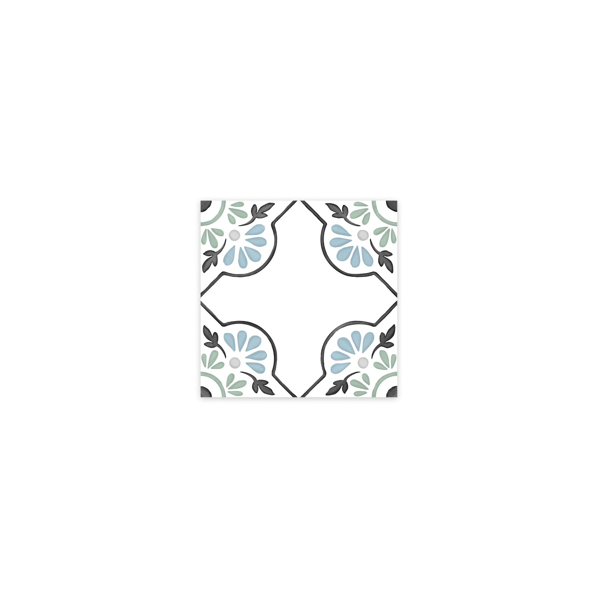 Le carrelage effet carreau ciment Lioris Bleu s'inscrit dans la tradition des revêtements graphiques à la fois intemporels et affirmés. Dans un intérieur contemporain comme dans un espace au caractère patrimonial, ce format 12,3 x 12,3 cm impose sa présence avec sobriété : une géométrie nette, un motif structuré, une palette qui dialogue avec la lumière naturelle.