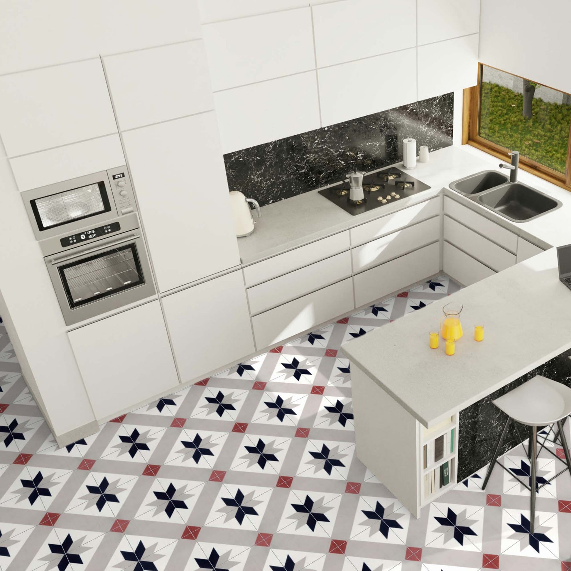 Carrelage effet Carreau ciment Polinya 20x20x1,1 cm Cemira - Sol et mur intérieur