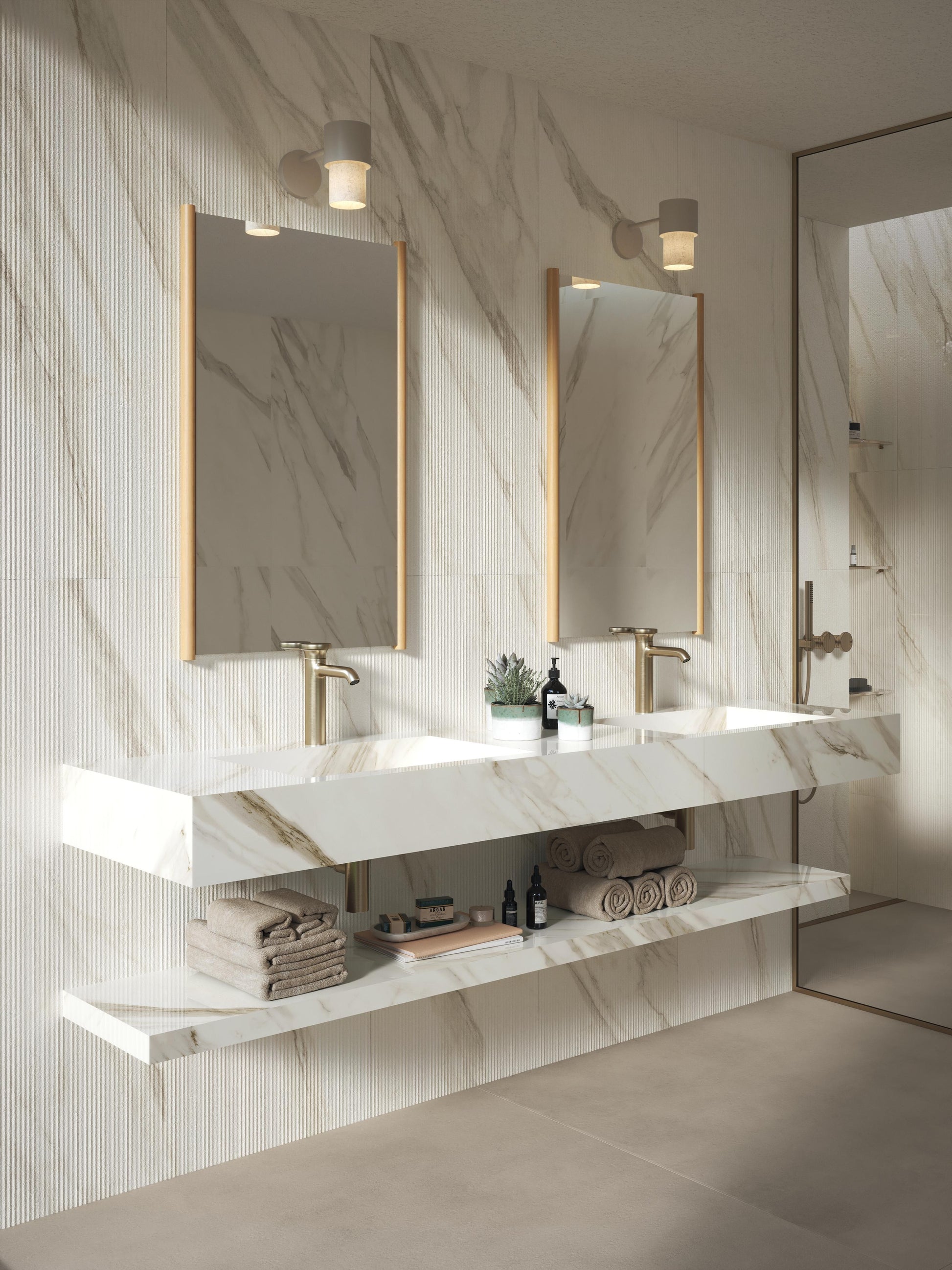 Carrelage effet Marbre 3D Blanc Calacatta Sublime Claw 120x50x0,85 cm Mat Venerio - Mur intérieur