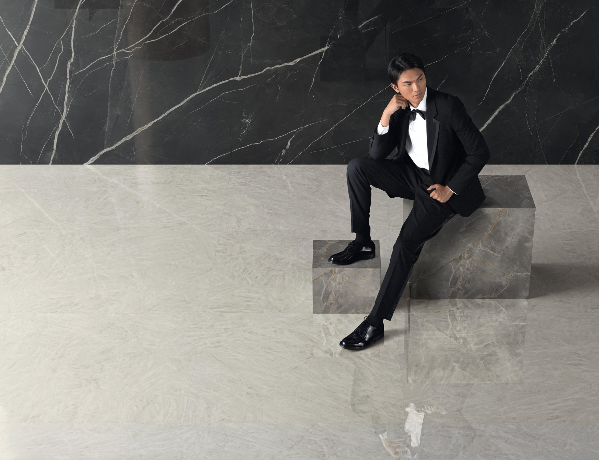 Carrelage effet Marbre Gris Titan 278x120x0,6 cm Brillant Montira - Mur intérieur