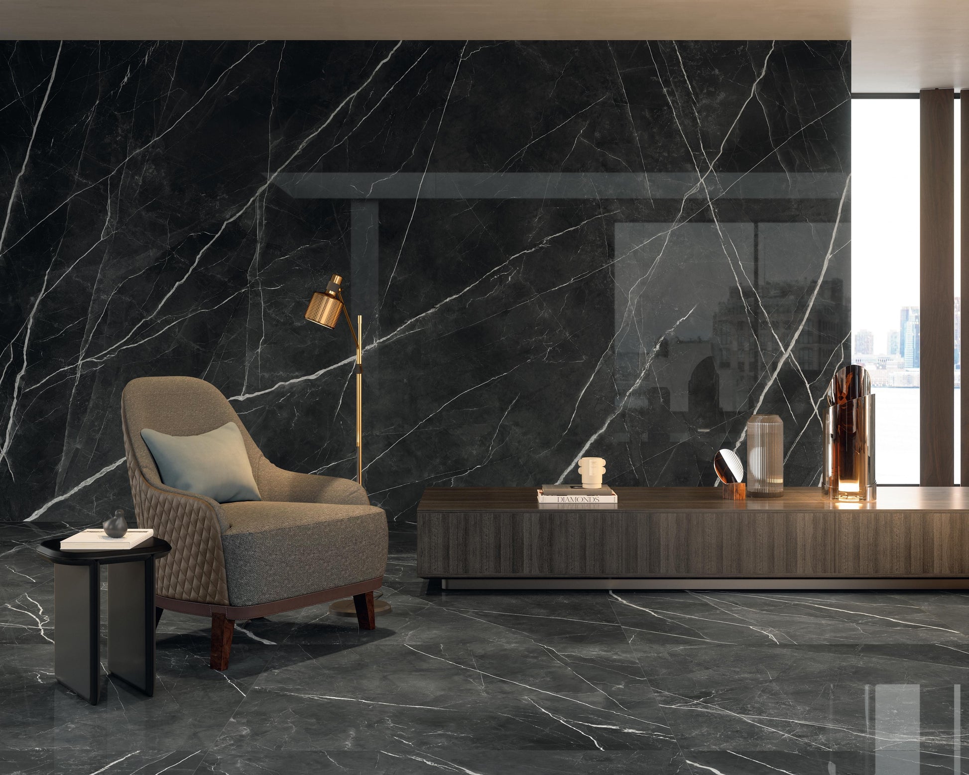 Carrelage effet Marbre Noir Notte 120x120x0,9 cm Brillant Florenza - Sol et mur intérieur
