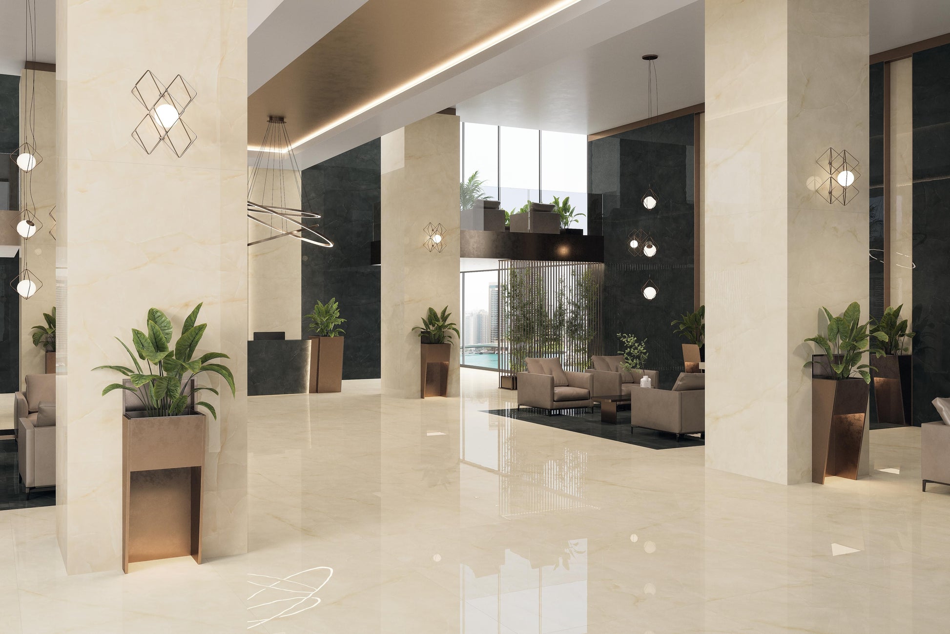 Carrelage effet Onyx Beige Albâtre 240x120x0,9 cm Brillant Nerolio - Mur intérieur