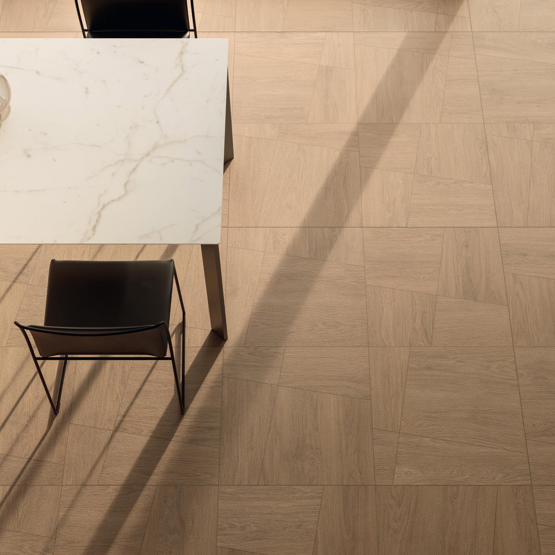Ce grès cérame s'adapte aux séjours, couloirs, chambres et espaces ouverts où la chaleur du bois est recherchée sans les contraintes d'entretien du parquet. Sa surface structurée assure une adhérence naturelle sous le pied, y compris dans les pièces traversantes à fort passage. Il se pose en pose droite pour une lecture contemporaine, ou en pose à l'anglaise pour renforcer le caractère artisanal du sol. Après la pose et le jointoiement, il est conseillé de traiter les joints avec un hydrofuge adapté pour préserver leur teinte sur la durée. Le nettoyage courant à l'eau claire suffit à entretenir le rendu mat du Cedrano, sans produit abrasif ni cire.