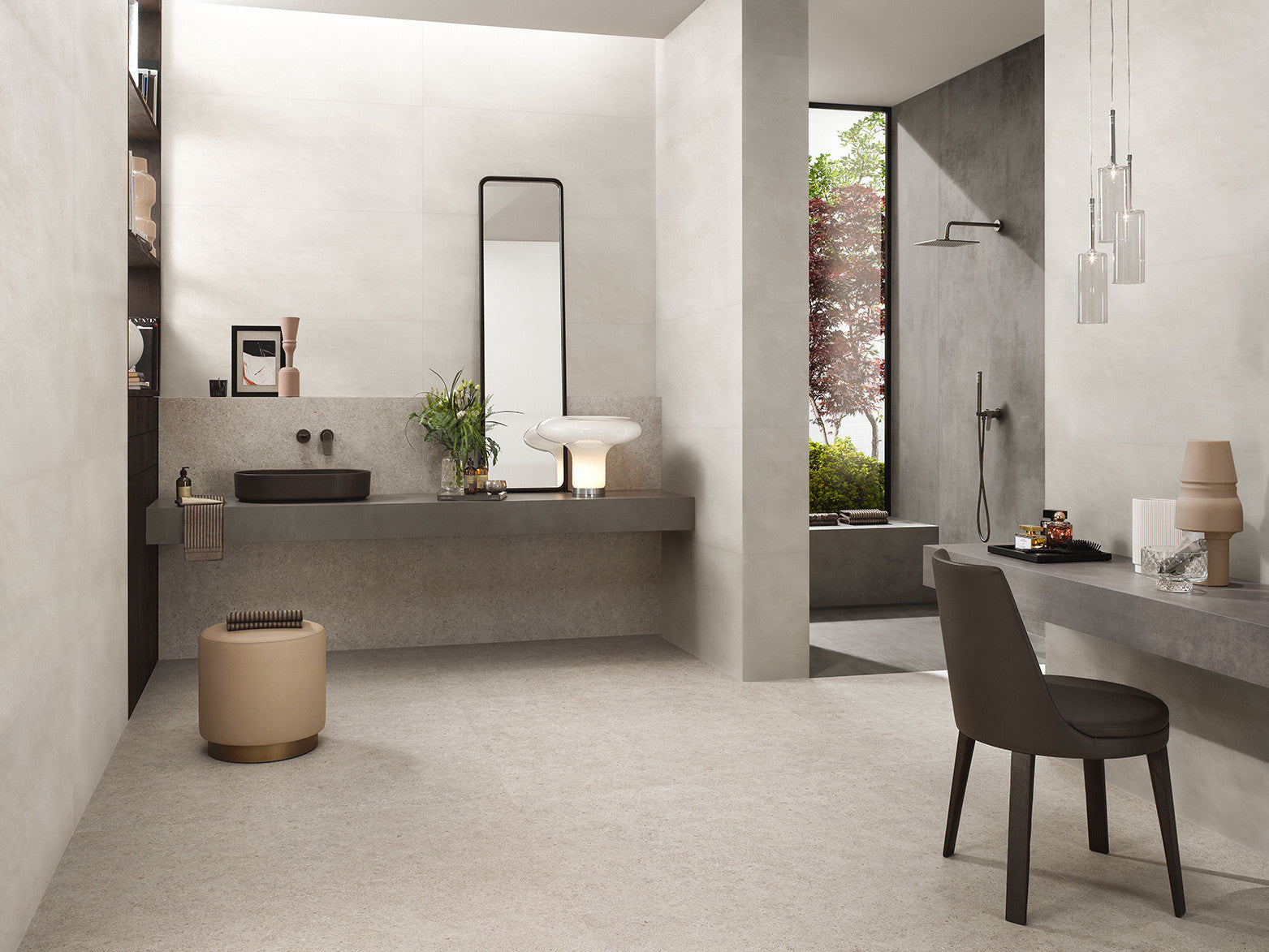 Carrelage effet pierre calcaire : une matière minérale au format grand dalle