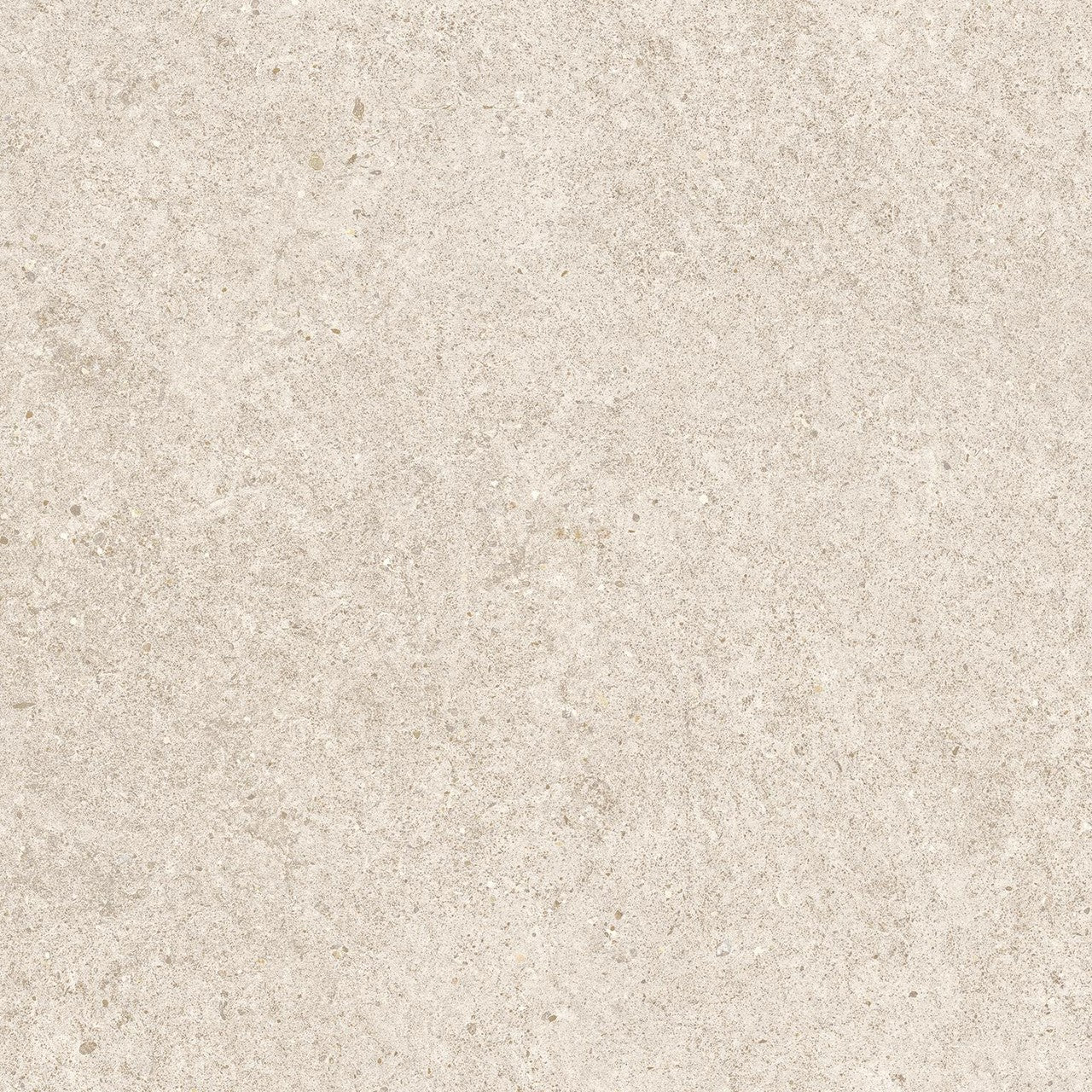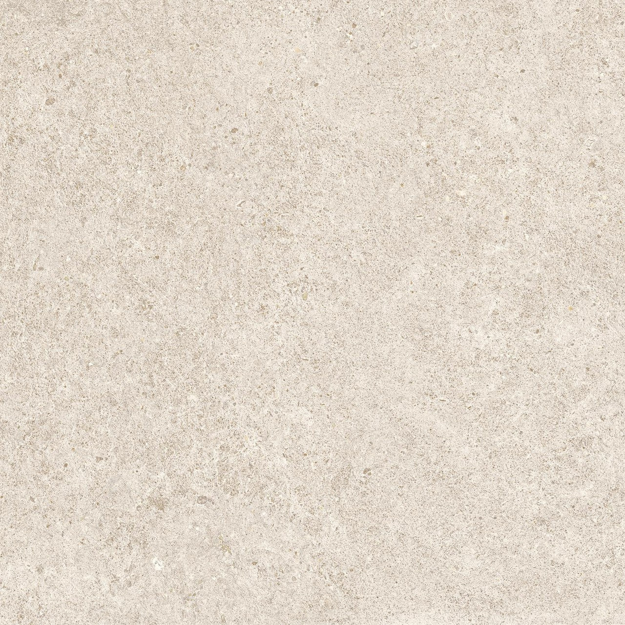 La teinte du Domella repose essentiellement sur un beige sable lumineux, relevé de nuances gris clair qui évoquent les voiles naturels du calcaire en carrière. Ce mariage de tons discrets confère à la dalle une profondeur sans ostentation. La classification V3 indique des variations chromatiques moyennes d'une pièce à l'autre : posées, elles créent un jeu de surface vivant, cohérent, fidèle à l'irrégularité naturelle de la pierre. La finition mate, non réfléchissante, capte la lumière rasante sans l'amplifier, renforçant ainsi la sensation de matière brute et minérale. Le format carré 60x60 cm, avec une épaisseur de 9 mm, offre des lignes de joint régulières et une pose en damier ou en décalé équilibré.