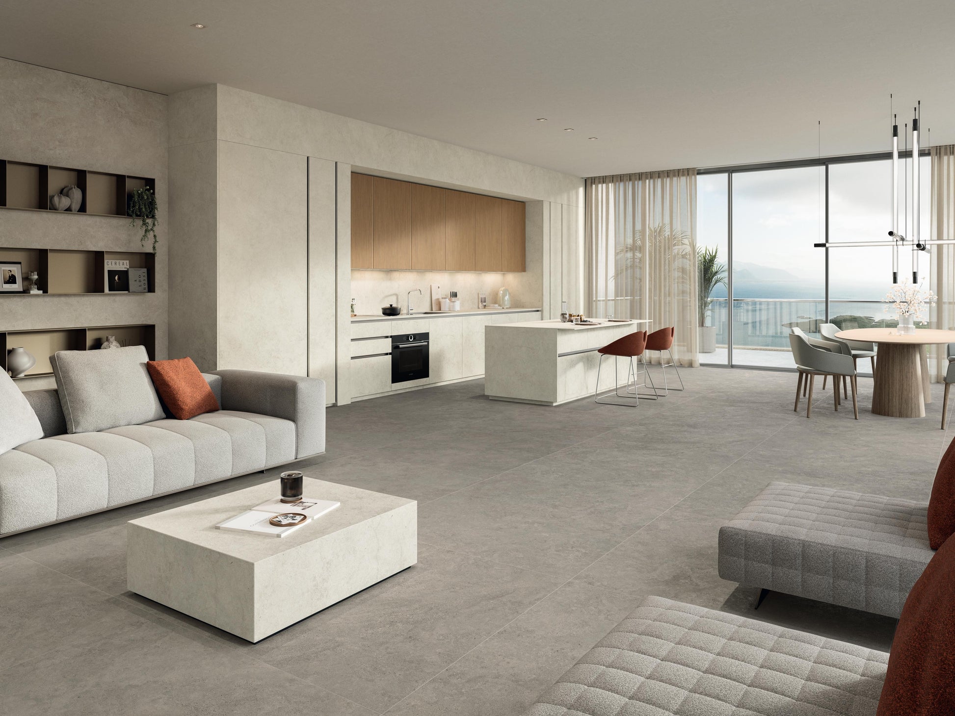 Carrelage effet Pierre Calcaire Gris Brume 278x120x0,6 cm Mat Rocalta - Mur intérieur