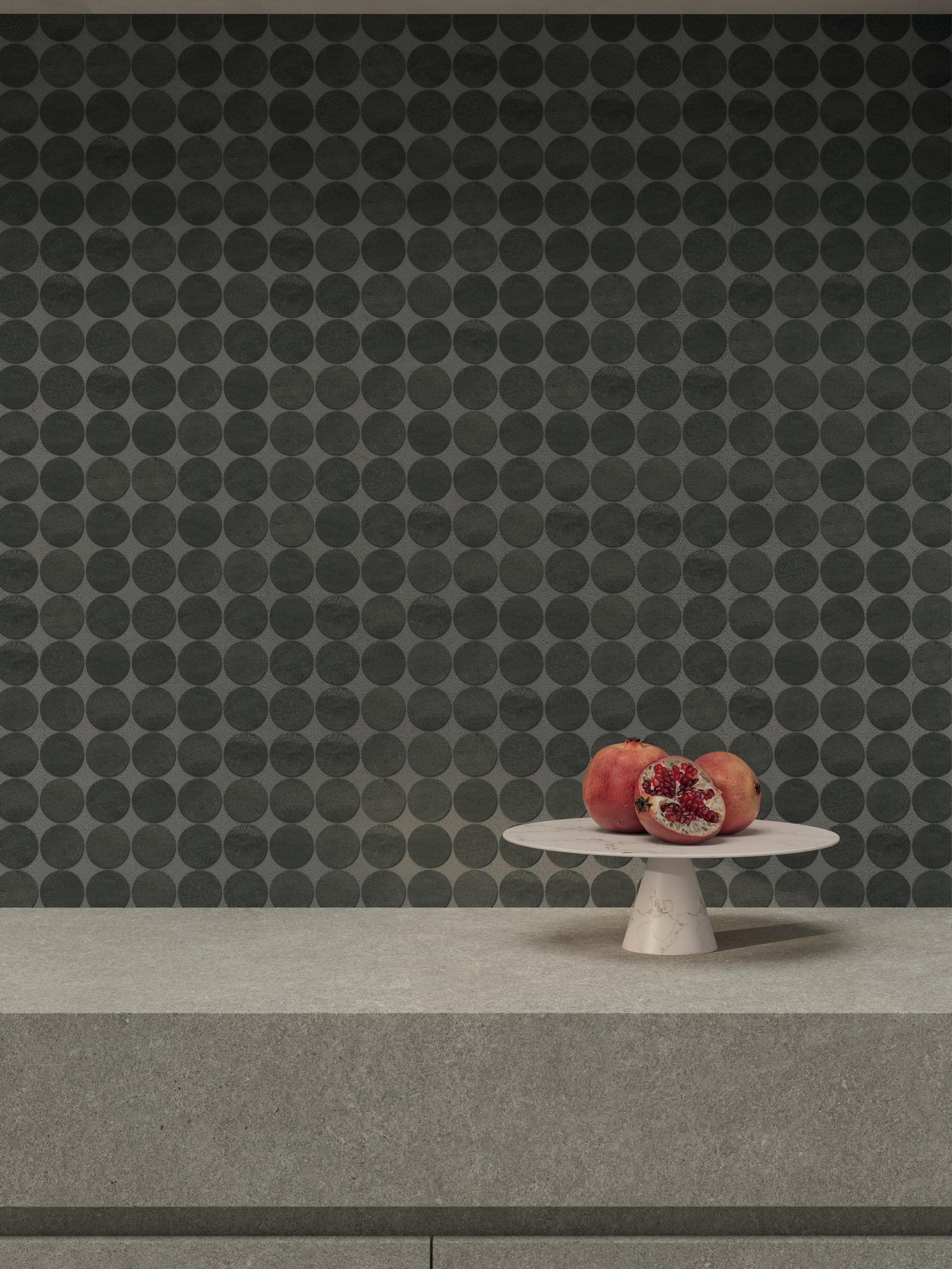 Mosaïque effet Béton Gris Charbon 5,2 cm Rond 32x32x0,9 cm Mat Stavira - Sol et mur intérieur